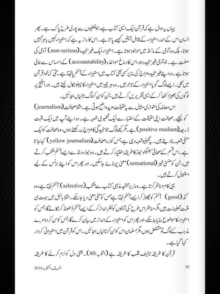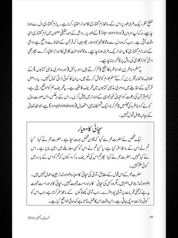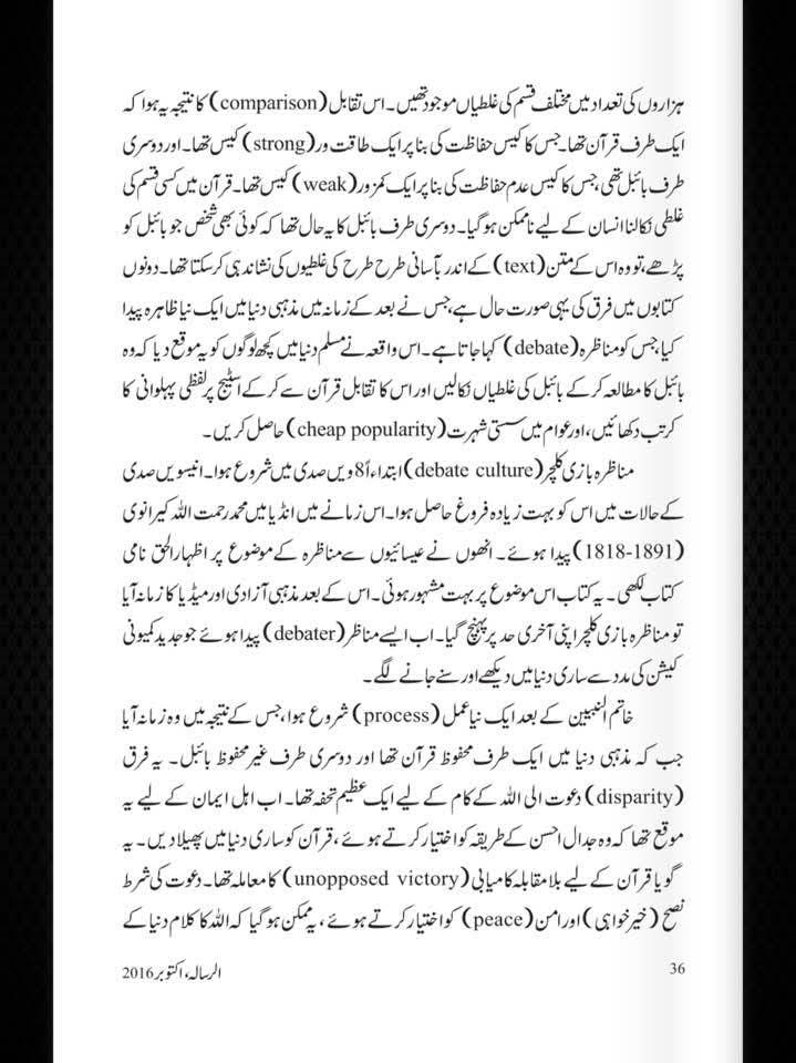 مولانا کا اصرار یہ تھا کہ دعوت کا درست منہج یہ ہے کہ ہم پہلے یہ واضح کریں کہ بائبل بھی ہمارے نزدیک ایک آسمانی کتاب ہے، اور اصل مسئلہ تحریف کا شور مچانا نہیں بلکہ بائبل کی نوعیت اور قرآن کی نوعیت کے فرق کو مثبت اور معروضی انداز میں بیان کرنا ہے۔ قرآن خود کو میزان، فرقان اور مہیمِن کے طور پر پیش کرتا ہے، اور اسی حیثیت سے وہ سابقہ صحائف کے بارے میں رہنمائی فراہم کرتا ہے۔ اس حقیقت کو واضح کیے بغیر تحریف کا عنوان چھیڑ دینا نہ صرف علمی کمزوری ہے بلکہ دعوت کے مقصد کے بھی خلاف ہے۔